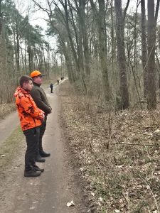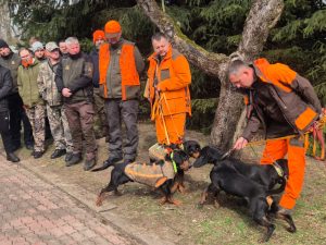 W dalszej części zajęć odbyło się spotkanie z Przewodniczącym Komisji Kynologicznej przy ZO PZŁ w Koninie – Kolegą Mariuszem Michalskim, który przybliżył zagadnienia z kynologii myśliwskiej. Wymienił rasy psów wykorzystywanych w łowiectwie oraz praktyczne aspekty związane z zakupem psa, jego układania i doskonalenia w pracy użytkowej. Wspólnie z Kolegą Tomaszem Walczakiem przedstawili psy rasy gończy polski, z którymi pracują podczas polowań zbiorowych.