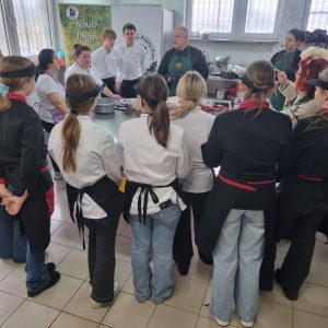 W miniony piątek Konińskie Diany zorganizowały warsztaty kulinarne z dziczyzną w roli głównej. Była to już piąta edycja tego przedsięwzięcia. Tradycyjnie gościny udzielił Zespół Szkół Rolniczych w Kościelcu. Młodzież szkolna z klas o profilu gastronomicznym wraz z opiekunami i Panie z Koła Gospodyń                  w Gozdowie oraz Diany przygotowali pyszne dania – tym razem z daniela. Swoim doświadczeniem dzielił się Kolega Tomasz Michalski – Członek Komisji Promocji Naczelnej Rady Łowieckiej. Pod okiem Mistrza wykonano gulasz, różne gatunki kiełbas, pasztety i kaszankę. Znakomicie komponowały się także placki ziemniaczane wykonane przez Kol. Lidię Niedośmiałek – Kęskę. Podczas degustacji walory smakowe oceniali m.in.: Dyrektor ZSzRCKU – Wiesław Kujawa, Członek NRŁ Kol. Paweł Dzikowski, Łowczy Okręgowy – Kol. Bernard Rux i Zastępca Nadleśniczego w Kole – Łukasz Brzeziński. Oprawę muzyczną zapewnili Koledzy Andrzej Kapuściński i Mariusz Czechowski z Zespołu Sygnalistów „Ogar”.