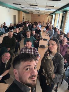 Tyma razem uczestnicy  kursu dla kandydatów do PZŁ mieli okazję zapoznać się z  podstawami  układania ptaków, ich biologii, przepisów prawa oraz etyki sokolniczej. Zajęcia przeprowadził  Lektor  z zakresu kultury, etyki i tradycji łowieckiej – Kol. Mateusz Moszczyński.